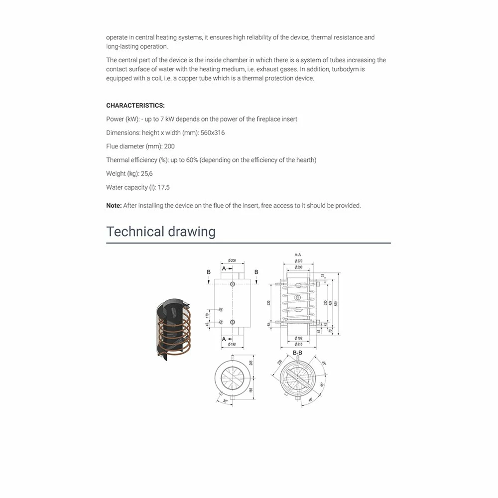 Εναλλάκτης νερού Φ200 KRATKI TURBODYM/W/W 7KW