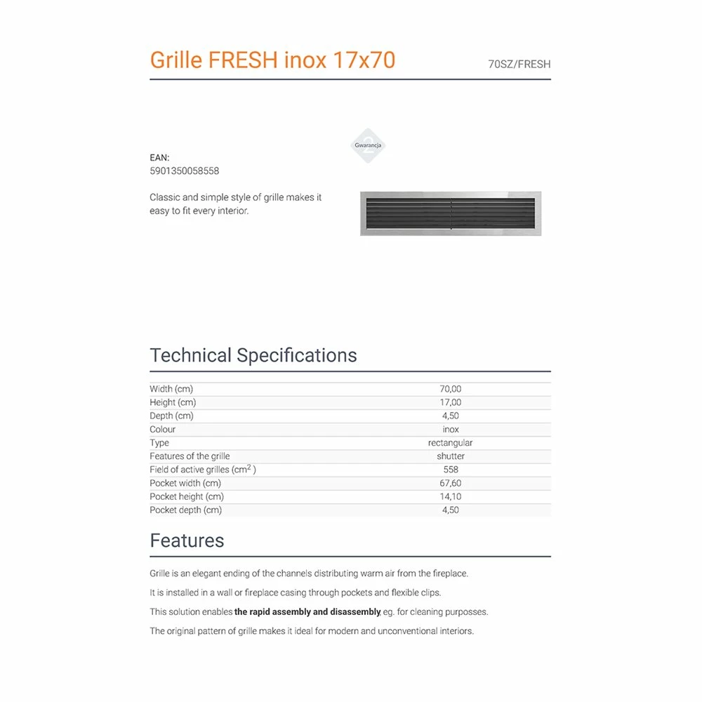 KRATKI ΠΕΡΣΙΔΑ 70SZ/FRESH 17X70CM INOX