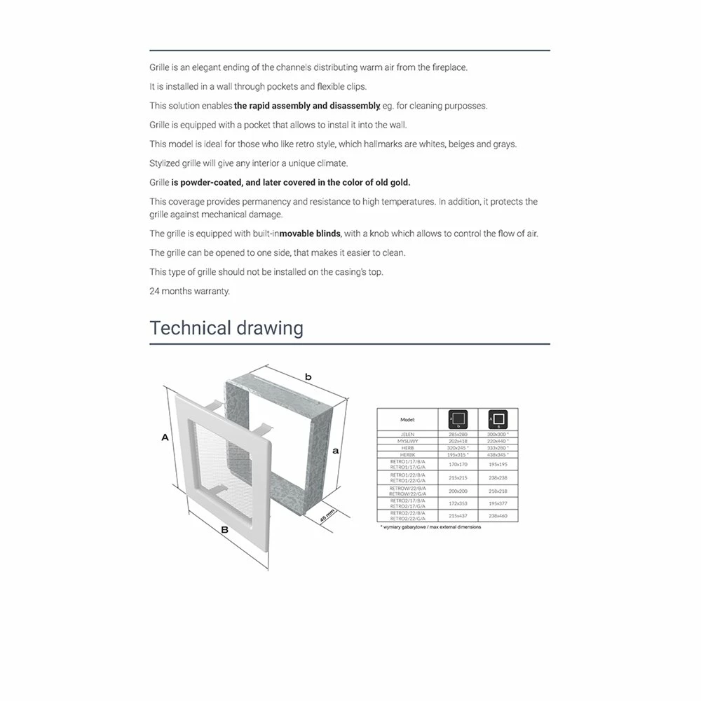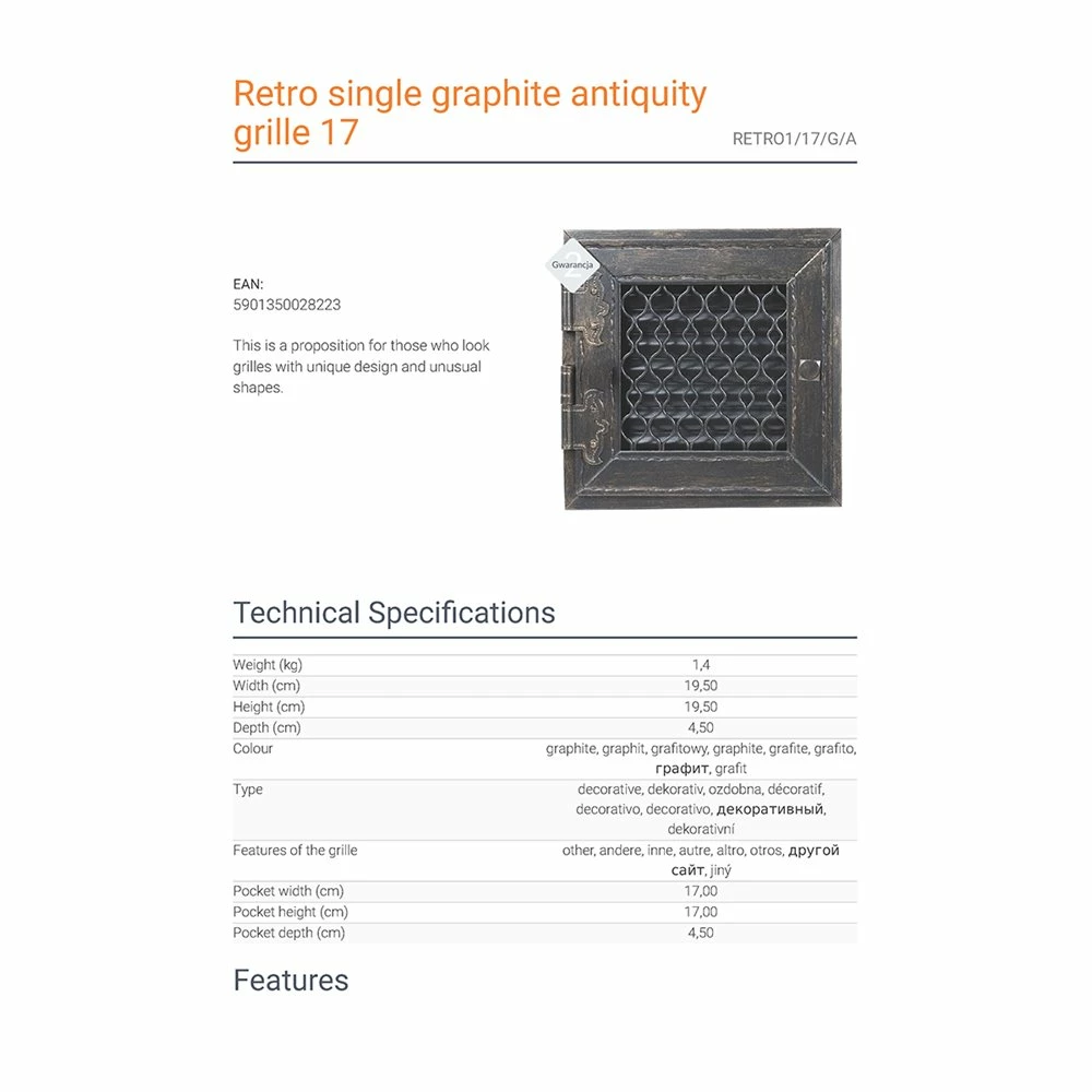 Περσίδα διακοσμητική ανοιγόμενη / ρυθμιζόμενη KRATKI RETRO1/17/G/A Γραφίτης