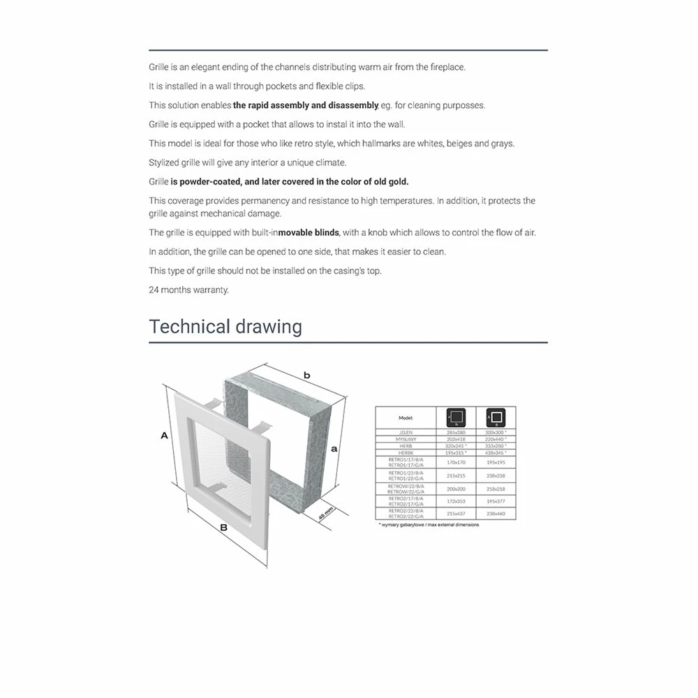 Περσίδα διακοσμητική ανοιγόμενη / ρυθμιζόμενη KRATKI RETRO1/22/G/A Γραφίτης