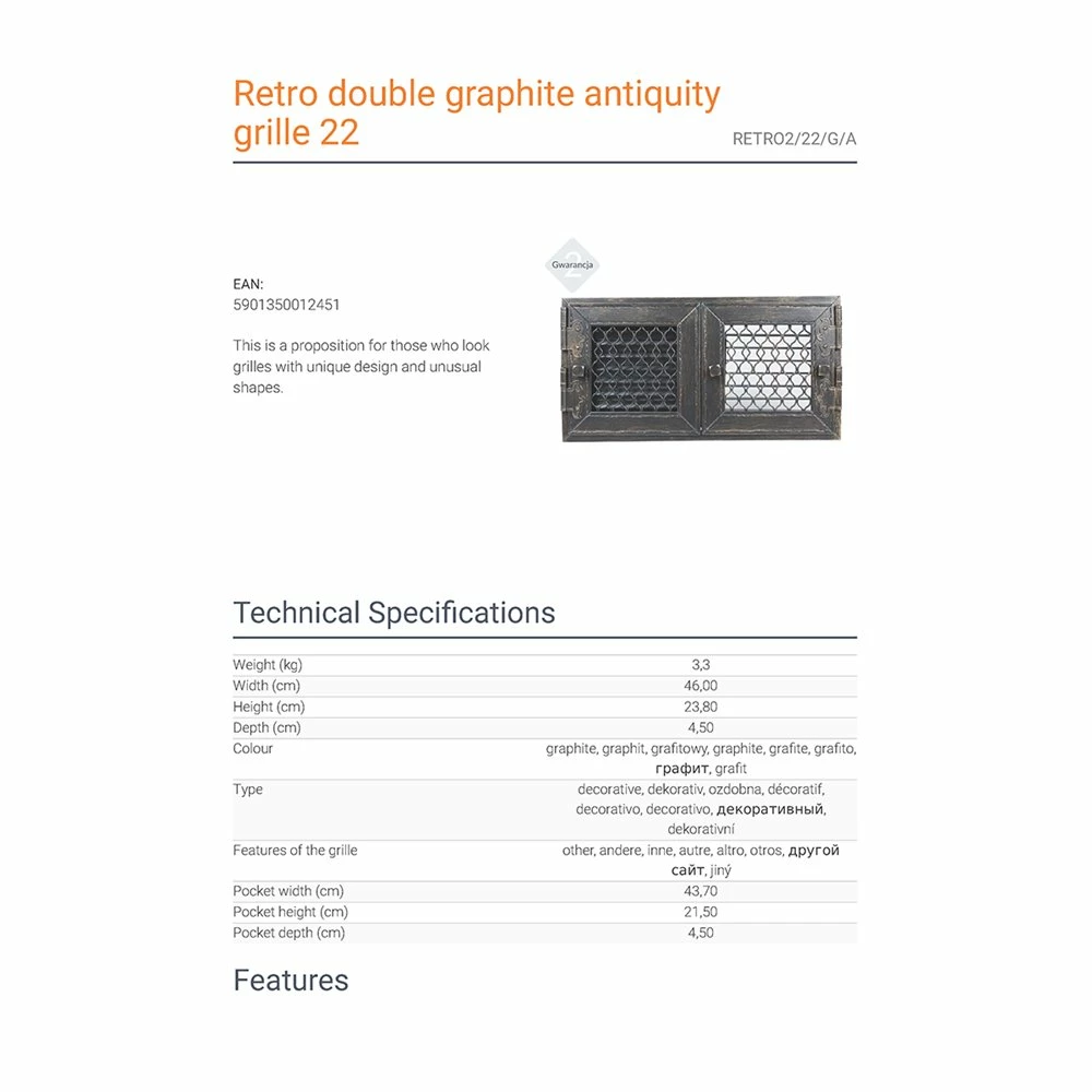 Περσίδα διακοσμητική ανοιγόμενη / ρυθμιζόμενη KRATKI RETRO2/22/G/A Γραφίτης