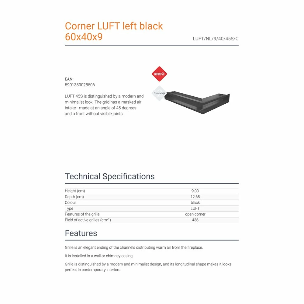 Περσίδα KRATKI LUFT/NL/9/40/45S/C 40X60X9CM Μαύρο Αριστερή γωνία