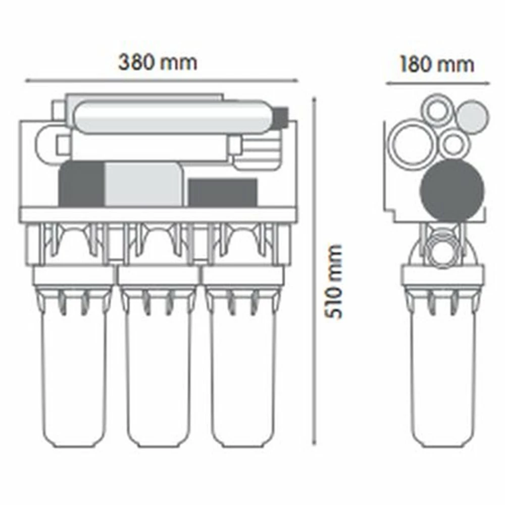 - Χωρητικότητα Μεβράνης : 50 GPD (190 Λίτρα/Μέρα)